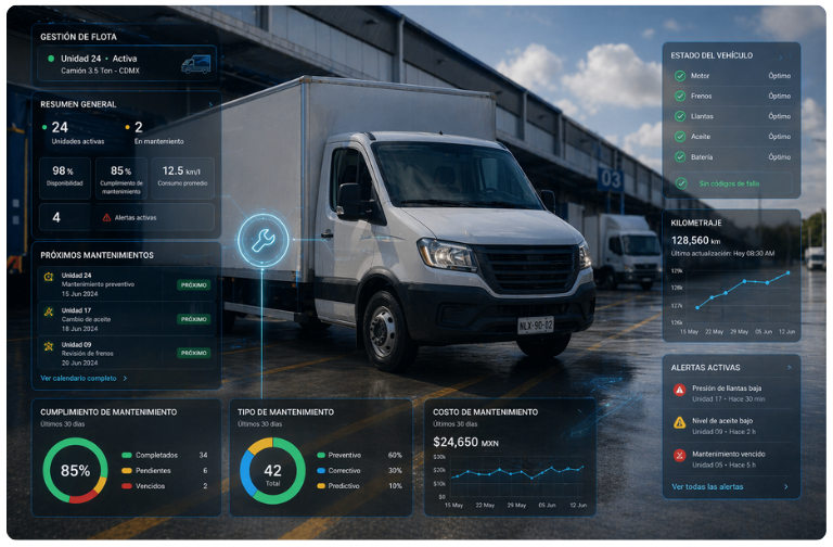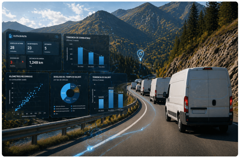 Convierte los datos diarios de tu flota en decisiones más inteligentes y bien informadas, todo desde una sola plataforma conectada.